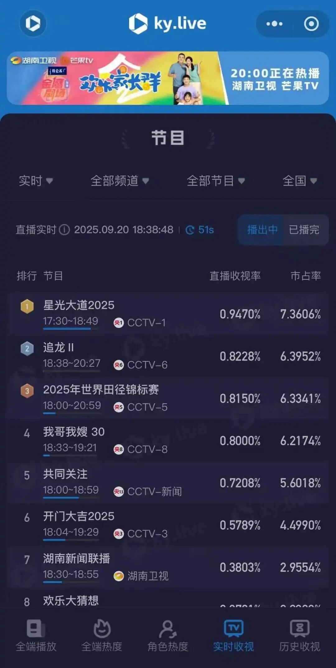 敬请锁定大屏端重播。9月25日(周四)19:30 CCTV-3